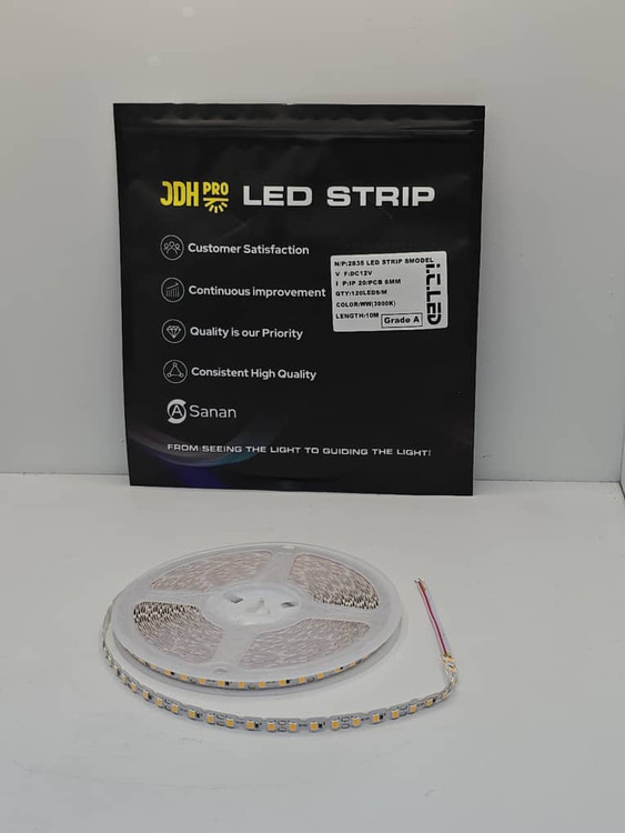 نوار اسامدی 12 ولت با تراکم 120LED/m و رنگ نور 3000 کلوین (آفتابی گرم)، مناسب برای نورپردازی حرفهای و دکوراتیو در فضاهای داخلی است.