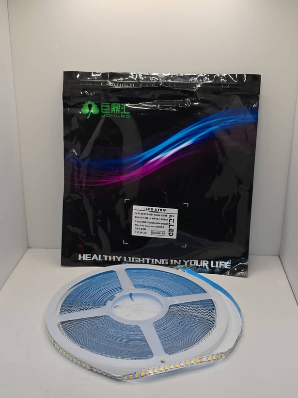 این نوار LED درایور خور و دو سیم تغذیه، قابلیت تولید **دو رنگ نور گرم و سرد** با دماهای رنگ **3000 کلوین و 6500 کلوین** را دارد. تراکم **180 LED در هر متر** روشنایی مناسب و یکنواخت بدون نقطهچراغهای قابل مشاهده فراهم میکند و برای فضاهایی که نیاز به نور قابل تنظیم بین گرم و سفید دارند، ایدهآل است.